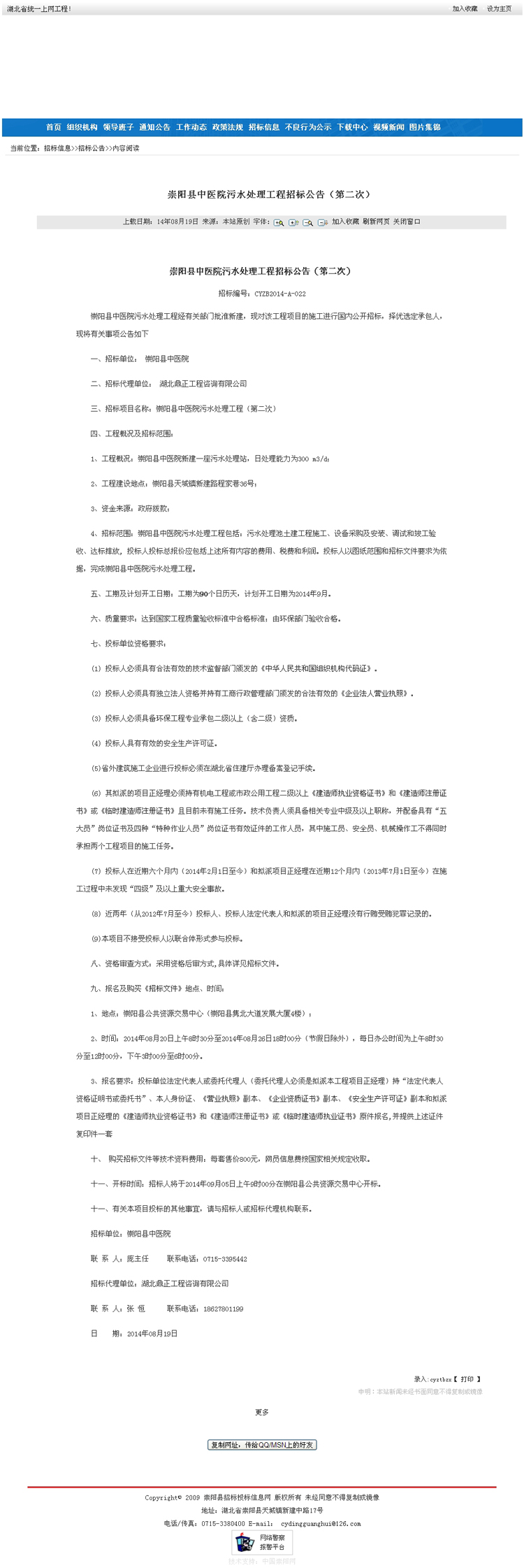 崇陽(yáng)縣中醫(yī)院污水處理工程(第二次)