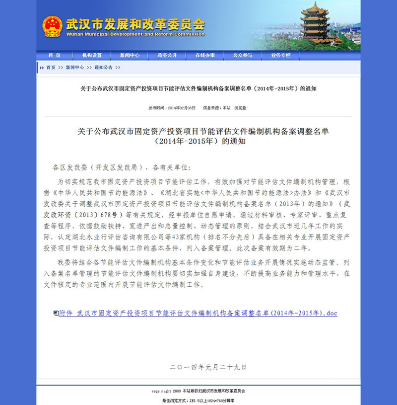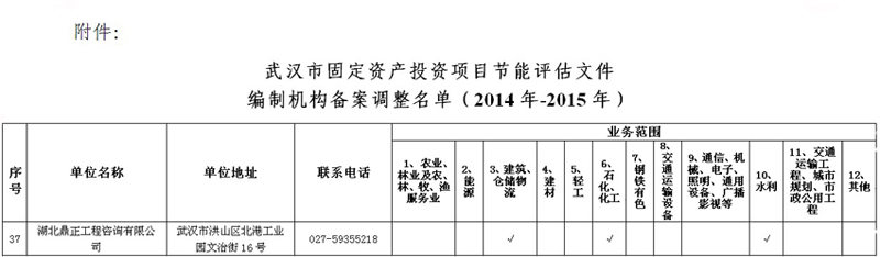 我公司入選武漢市固定資產(chǎn)投資項目節(jié)能評估文件編制機構(gòu)名單