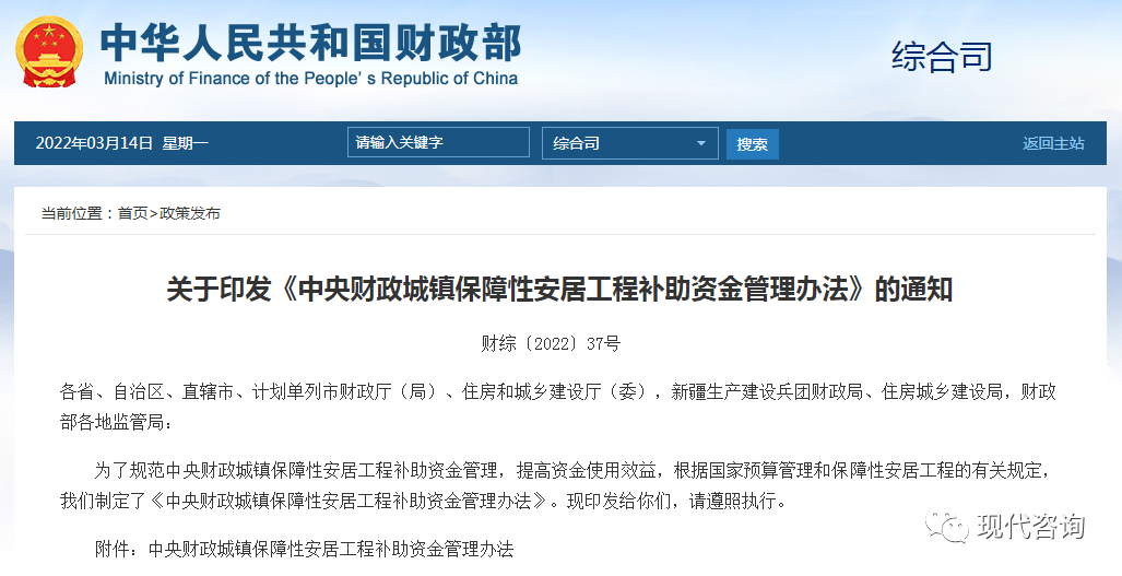 據(jù)財(cái)政部網(wǎng)站3月14日消息,財(cái)政部印發(fā)《中央財(cái)政城鎮(zhèn)保障性安居工程補(bǔ)助資金管理辦法》。