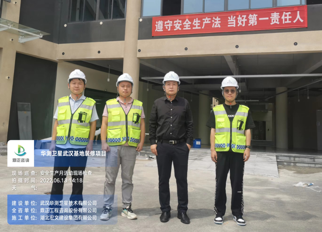 6月13日,鼎正咨詢副總經(jīng)理張虎、項(xiàng)目管理部經(jīng)理張力來(lái)到華測(cè)武漢基地項(xiàng)目現(xiàn)場(chǎng),開(kāi)展2022年“安全生產(chǎn)月”活動(dòng)巡查,貫徹落實(shí)“抓安全管理就要抓隱患排查”思想,對(duì)華測(cè)項(xiàng)目在施工期間所開(kāi)展的項(xiàng)目安全進(jìn)行檢查。張總表示:“針對(duì)現(xiàn)場(chǎng)發(fā)現(xiàn)的安全隱患,除了通過(guò)發(fā)送安全檢查報(bào)告、監(jiān)理通知單方式形成書(shū)面記錄以外,還要安排專(zhuān)人督促整改落實(shí)情況,做到安全隱患零容忍?!彼麖?qiáng)調(diào)杜絕僥幸心理,安全生產(chǎn)必須警鐘長(zhǎng)鳴,要遵循安全生產(chǎn)科學(xué)規(guī)律,及時(shí)整治潛在隱患,筑牢安全生產(chǎn)防線。