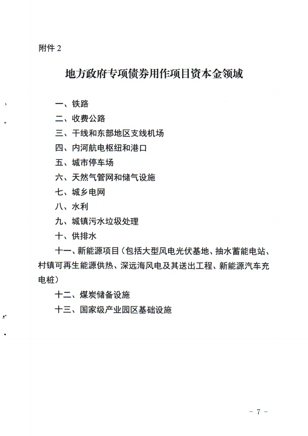 7、2023年地方政府專項債用作項目資本金領域是否有變化?