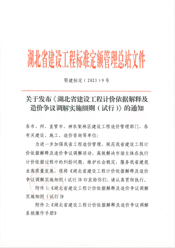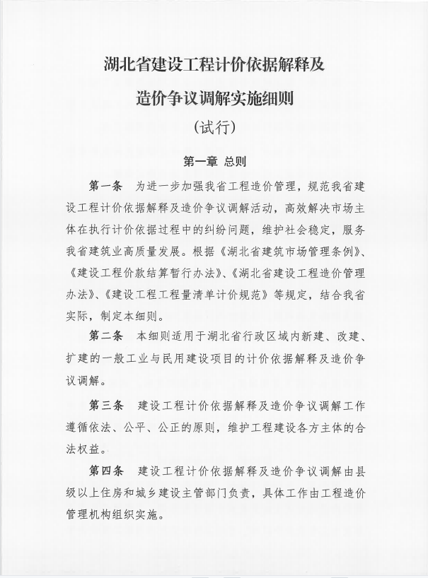 《湖北省建設(shè)工程計(jì)價(jià)依據(jù)解釋及造價(jià)爭(zhēng)議調(diào)解實(shí)施細(xì)則(試行)》