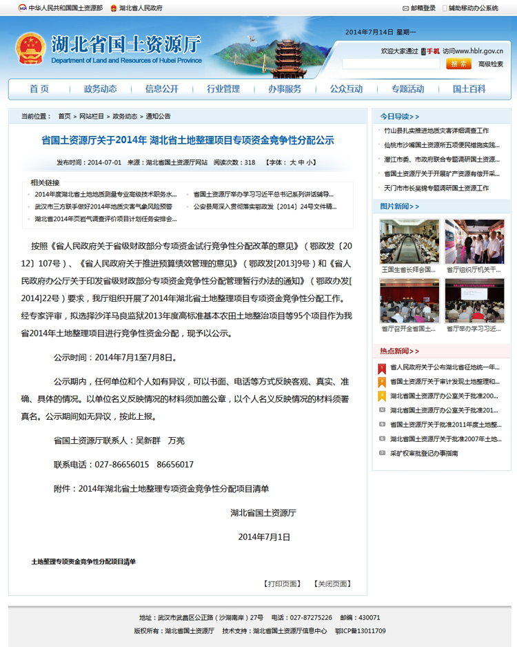 | 2014年湖北省土地整理專項資金競爭性分配項目清單 | |