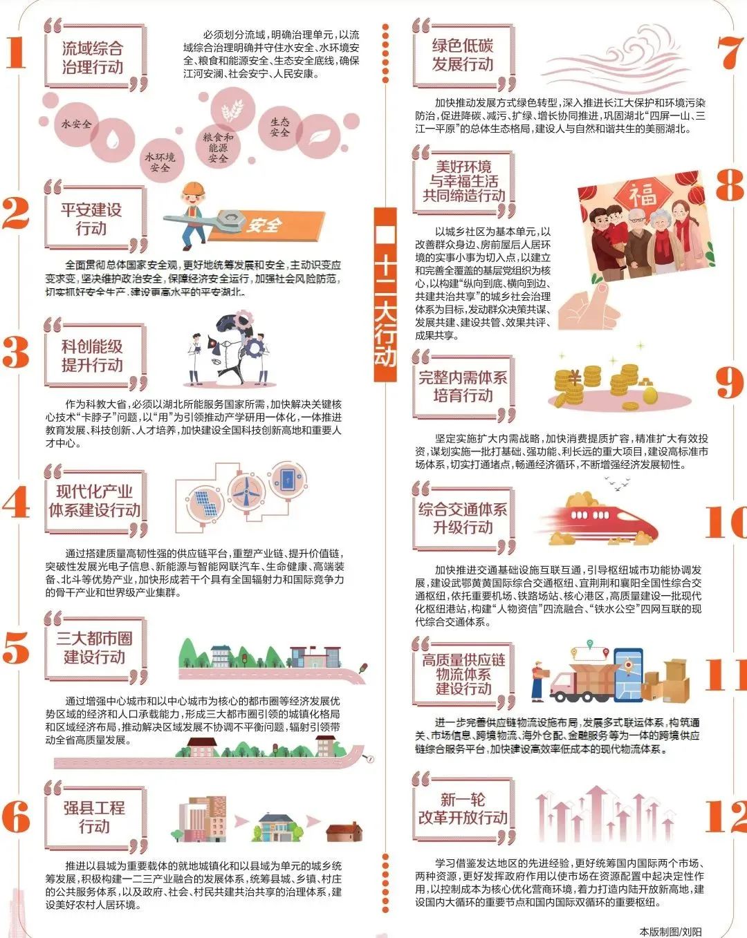 4月18日,湖北省政府新聞辦召開《關(guān)于加快建設(shè)全國構(gòu)建新發(fā)展格局先行區(qū)的實(shí)施意見》(以下簡(jiǎn)稱《實(shí)施意見》)精神解讀系列新聞發(fā)布會(huì)第一場(chǎng)?!秾?shí)施意見》共分三大部分和附件。第一部分是總體要求,主要闡述文件起草的指導(dǎo)思想、總體思路、基本原則、主要目標(biāo);第二部分是主體,圍繞統(tǒng)籌發(fā)展和安全、統(tǒng)籌城鄉(xiāng)區(qū)域和資源環(huán)境、統(tǒng)籌國內(nèi)國際兩個(gè)市場(chǎng)兩種資源,部署“十二大行動(dòng)”(具體內(nèi)容見下圖);第三部分從組織領(lǐng)導(dǎo)、完善配套政策、加強(qiáng)考核評(píng)估等方面強(qiáng)調(diào)了推進(jìn)實(shí)施的保障措施。附件為加快建設(shè)全國構(gòu)建新發(fā)展格局先行區(qū)的主要指標(biāo),設(shè)定了71項(xiàng)數(shù)據(jù)指標(biāo)。