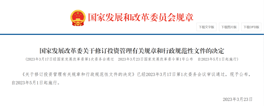 國(guó)家發(fā)展改革委關(guān)于修訂投資管理有關(guān)規(guī)章和行政規(guī)范性文件的決定
