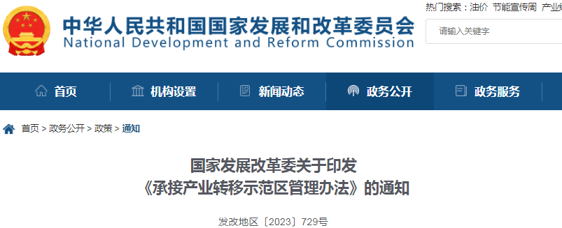 國家發(fā)展改革委關(guān)于印發(fā)《承接產(chǎn)業(yè)轉(zhuǎn)移示范區(qū)管理辦法》的通知