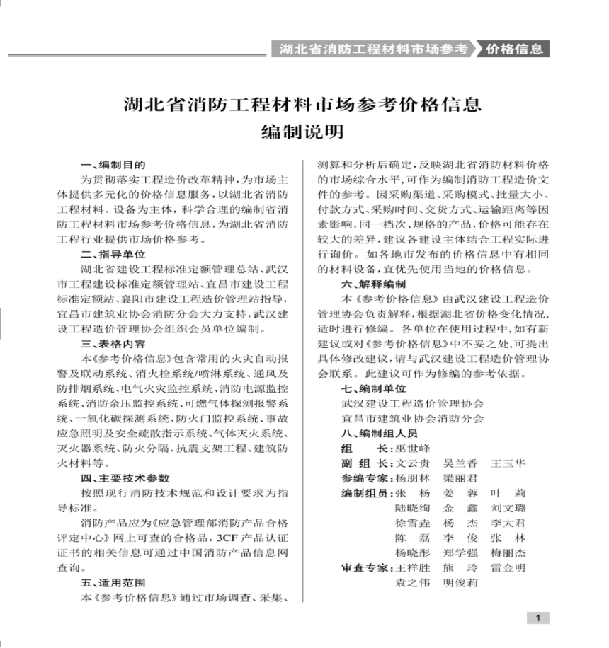 武漢建設(shè)工程造價(jià)管理協(xié)會(huì)、宜昌市建筑業(yè)協(xié)會(huì)消防分會(huì)聯(lián)合組建了編委會(huì),通過(guò)市場(chǎng)調(diào)查、數(shù)據(jù)分析、整理歸類、專家審查等環(huán)節(jié),保證了價(jià)格信息的科學(xué)性、合理性、準(zhǔn)確性、完整性。