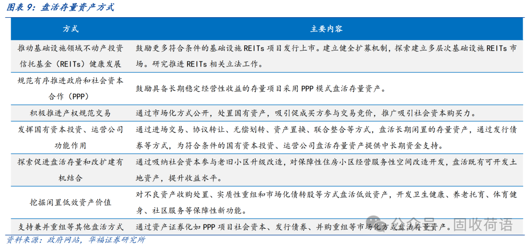 對(duì)于有優(yōu)質(zhì)上市國(guó)企的區(qū)域有一定借鑒意義。盤(pán)活存量資產(chǎn)的參與主體多為央企、國(guó)企,背后依靠的是地區(qū)的優(yōu)質(zhì)國(guó)有資源。