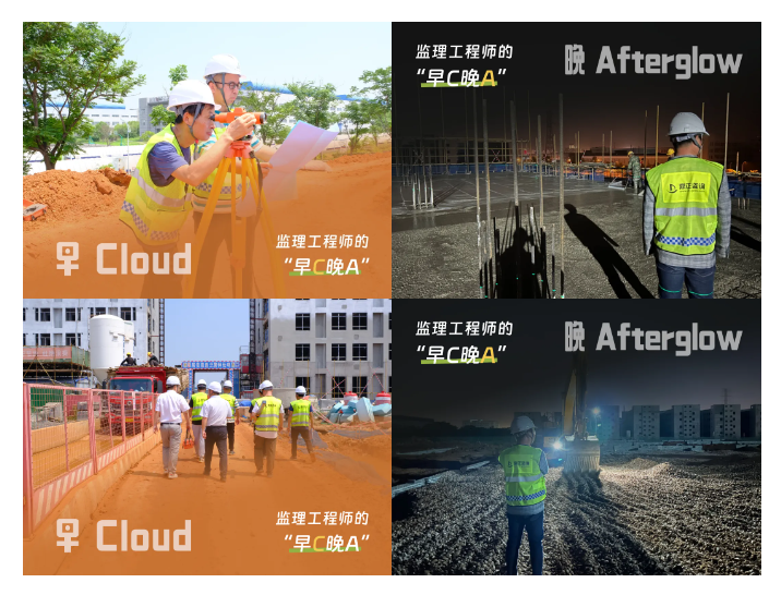 早:天還未亮,監(jiān)理工程師,已經(jīng)到達施工現(xiàn)場。迎著Cloud(藍天白云),開啟第一輪現(xiàn)場巡查,頭戴安全帽,手夾施工圖,一邊巡查一邊記錄。