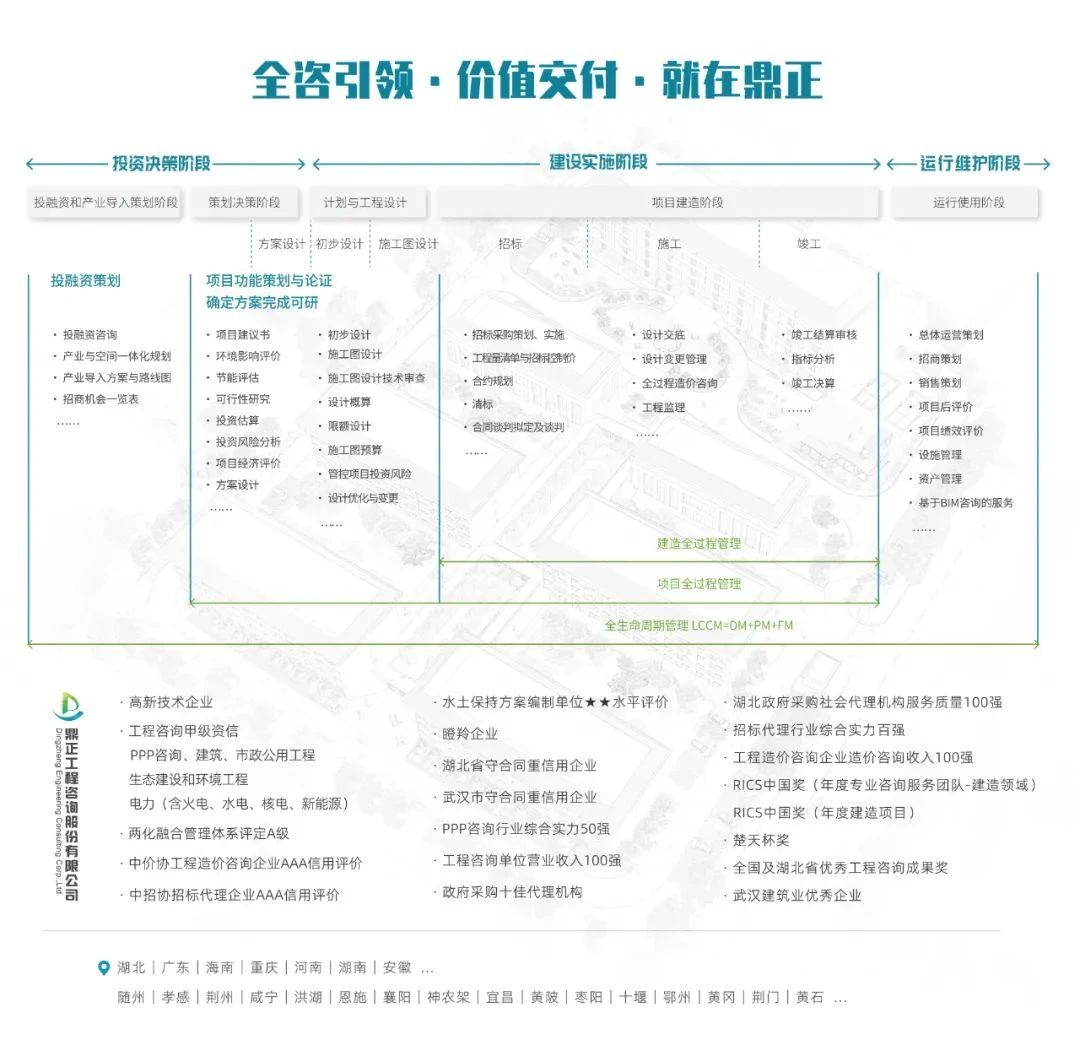 鼎正業(yè)務(wù)涵蓋設(shè)計(jì)咨詢產(chǎn)業(yè)鏈及工程產(chǎn)品產(chǎn)業(yè)鏈,既包括居住建筑、公共建筑、工業(yè)建筑等建筑設(shè)計(jì)領(lǐng)域,市政排水設(shè)計(jì)、市政道路設(shè)計(jì)等市政設(shè)計(jì)領(lǐng)域及景觀綠化設(shè)計(jì)領(lǐng)域,也包括全過(guò)程工程咨詢、全過(guò)程產(chǎn)業(yè)咨詢、投融資咨詢、項(xiàng)目管理、造價(jià)咨詢、造價(jià)與法律糾紛咨詢、招標(biāo)代理等工程投資、造價(jià)、運(yùn)營(yíng)等業(yè)務(wù)。