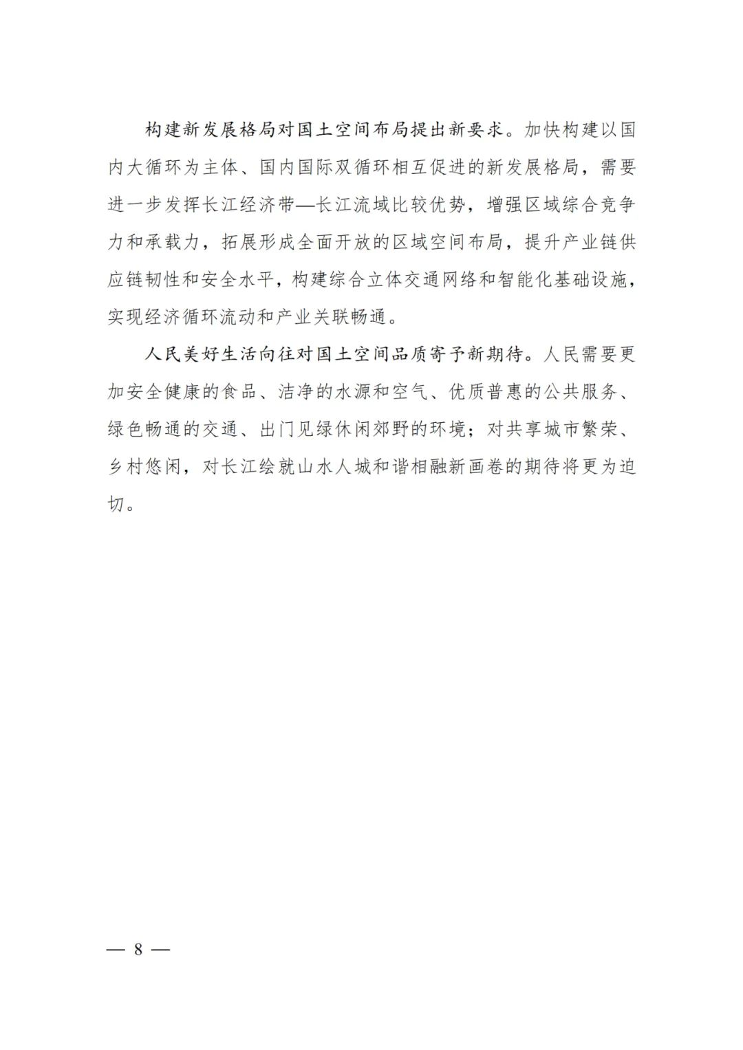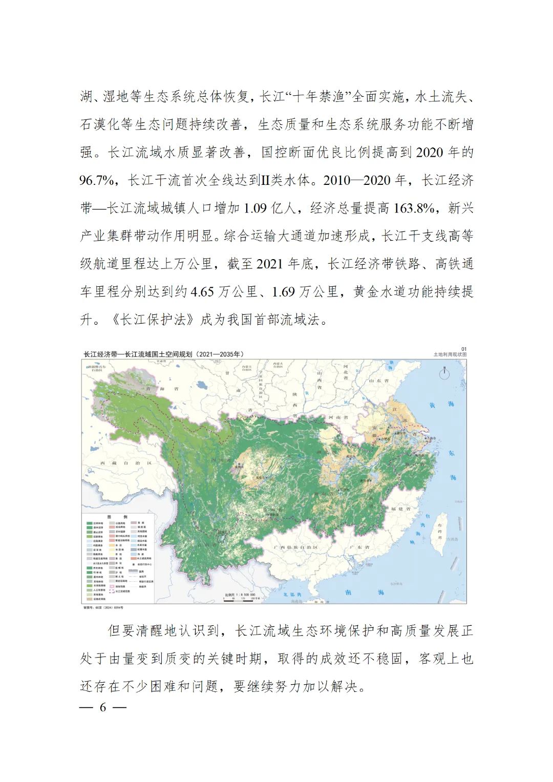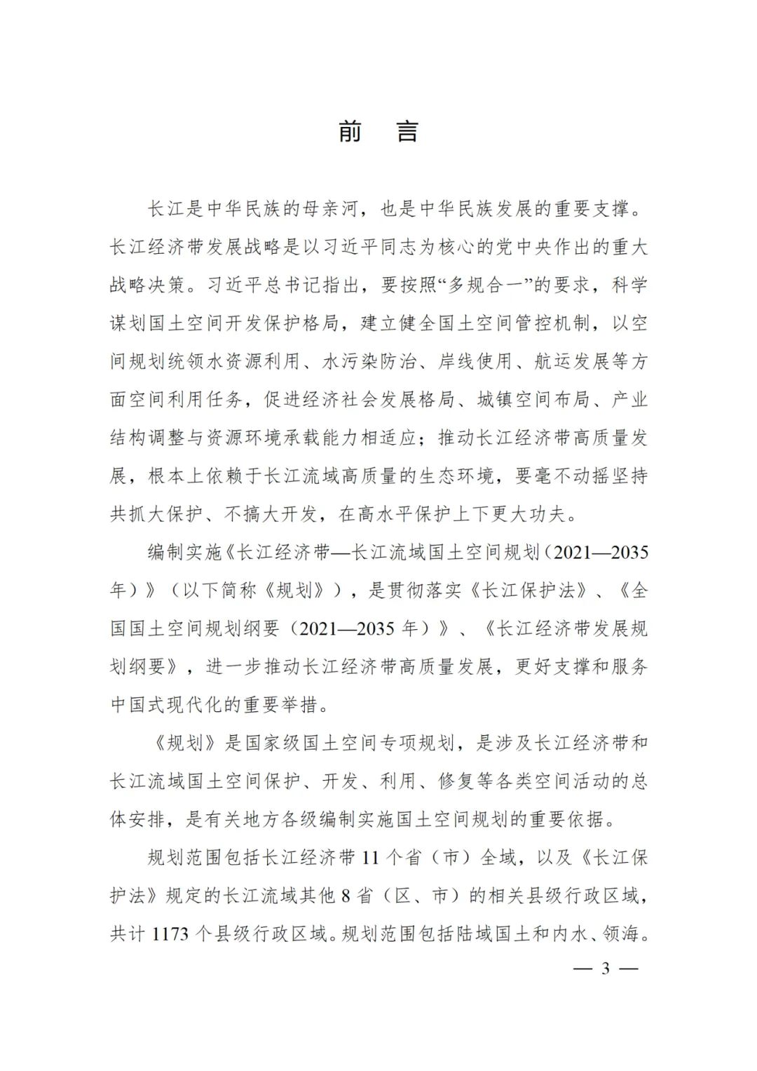 2024年2月9日,《長(zhǎng)江經(jīng)濟(jì)帶—長(zhǎng)江流域國(guó)土空間規(guī)劃(2021—2035年)》經(jīng)國(guó)務(wù)院批復(fù)同意。9月10日,自然資源部正式印發(fā)《長(zhǎng)江經(jīng)濟(jì)帶—長(zhǎng)江流域國(guó)土空間規(guī)劃(2021—2035年)》。規(guī)劃范圍包括長(zhǎng)江經(jīng)濟(jì)帶11個(gè)?。ㄊ校┤?/strong>,以及《長(zhǎng)江保護(hù)法》規(guī)定的長(zhǎng)江流域其他8省(區(qū)、市)的相關(guān)縣級(jí)行政區(qū)域,共計(jì)1173個(gè)縣級(jí)行政區(qū)域。規(guī)劃范圍包括陸域國(guó)土和內(nèi)水、領(lǐng)海。其中,陸域面積240萬平方公里。(后附規(guī)劃范圍詳細(xì)表格)規(guī)劃期限為2021年至2035年。