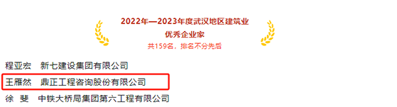 11月21日,武漢建筑業(yè)協(xié)會正式公布“2023年度武漢市最具成長性民營建筑企業(yè)”、“2022-2023年度武漢地區(qū)建筑業(yè)優(yōu)秀企業(yè)、優(yōu)秀企業(yè)家、優(yōu)秀總工程師、優(yōu)秀項目經(jīng)理”兩項評選結果,鼎正連續(xù)上榜,斬獲多項行業(yè)榮譽!