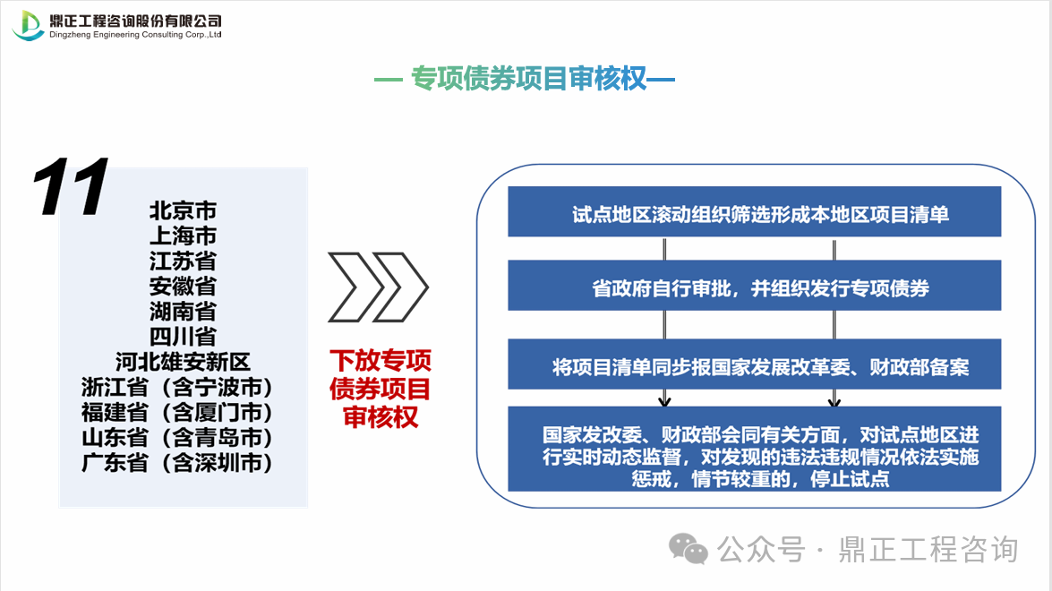 地方政府專項(xiàng)債券項(xiàng)目“自審自發(fā)”試點(diǎn)地區(qū)名單:北京市、上海市、江蘇省、浙江省(含寧波市)、安徽省、福建?。ê瑥B門市)、山東?。ê鄭u市)、湖南省、廣東?。ê钲谑校?、四川省、河北雄安新區(qū)等11個(gè)省市。