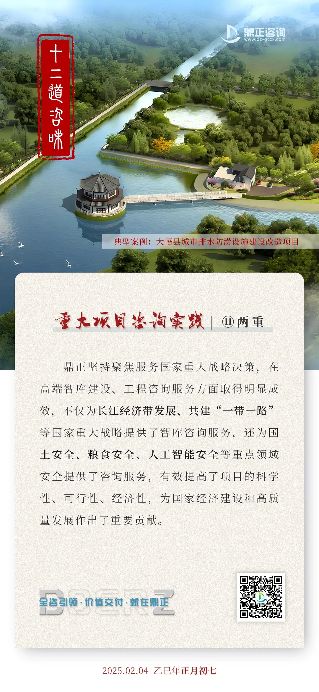 鼎正憑借其豐富的行業(yè)經(jīng)驗(yàn)和專業(yè)團(tuán)隊(duì),在“兩重兩新”重大項(xiàng)目領(lǐng)域積累了大量的成功案例。在水利水電及交通運(yùn)輸方面,鼎正積極參與多項(xiàng)國家級重點(diǎn)工程的前期論證工作,確保設(shè)計(jì)方案既符合經(jīng)濟(jì)效益又兼顧生態(tài)環(huán)保要求;在應(yīng)急管理方面,鼎正參與了多個(gè)應(yīng)急管理系統(tǒng)項(xiàng)目,如城市防洪排澇系統(tǒng)等。此外,鼎正在建筑領(lǐng)域也開展了多項(xiàng)設(shè)備更新項(xiàng)目,如水污染治理設(shè)施提標(biāo)改造等。