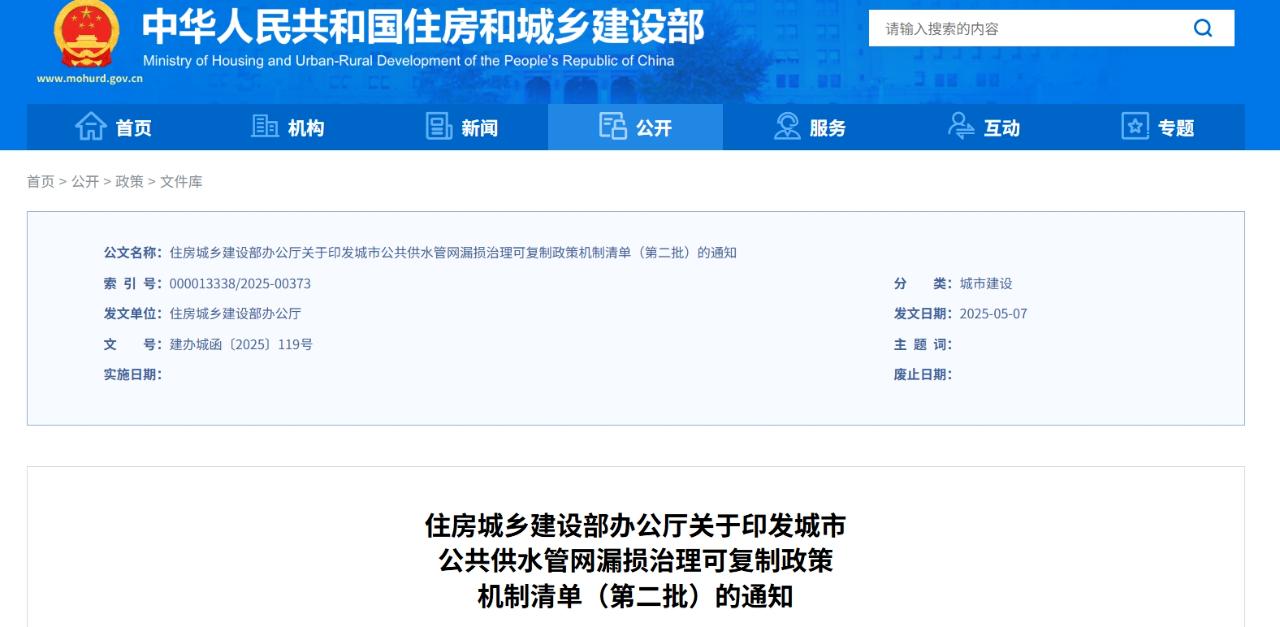 城市公共供水管網(wǎng)漏損治理可復(fù)制政策機(jī)制清單(第二批)