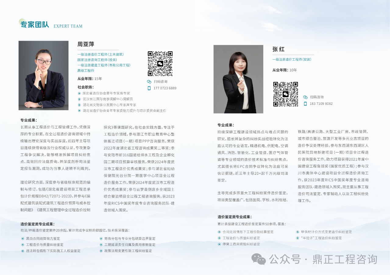 故,組建了一支精通工程造價、熟悉法律法規(guī),且融合工程設計、招標投標、合同管理、施工組織設計的復合型專業(yè)團隊,其中專家團隊如下: