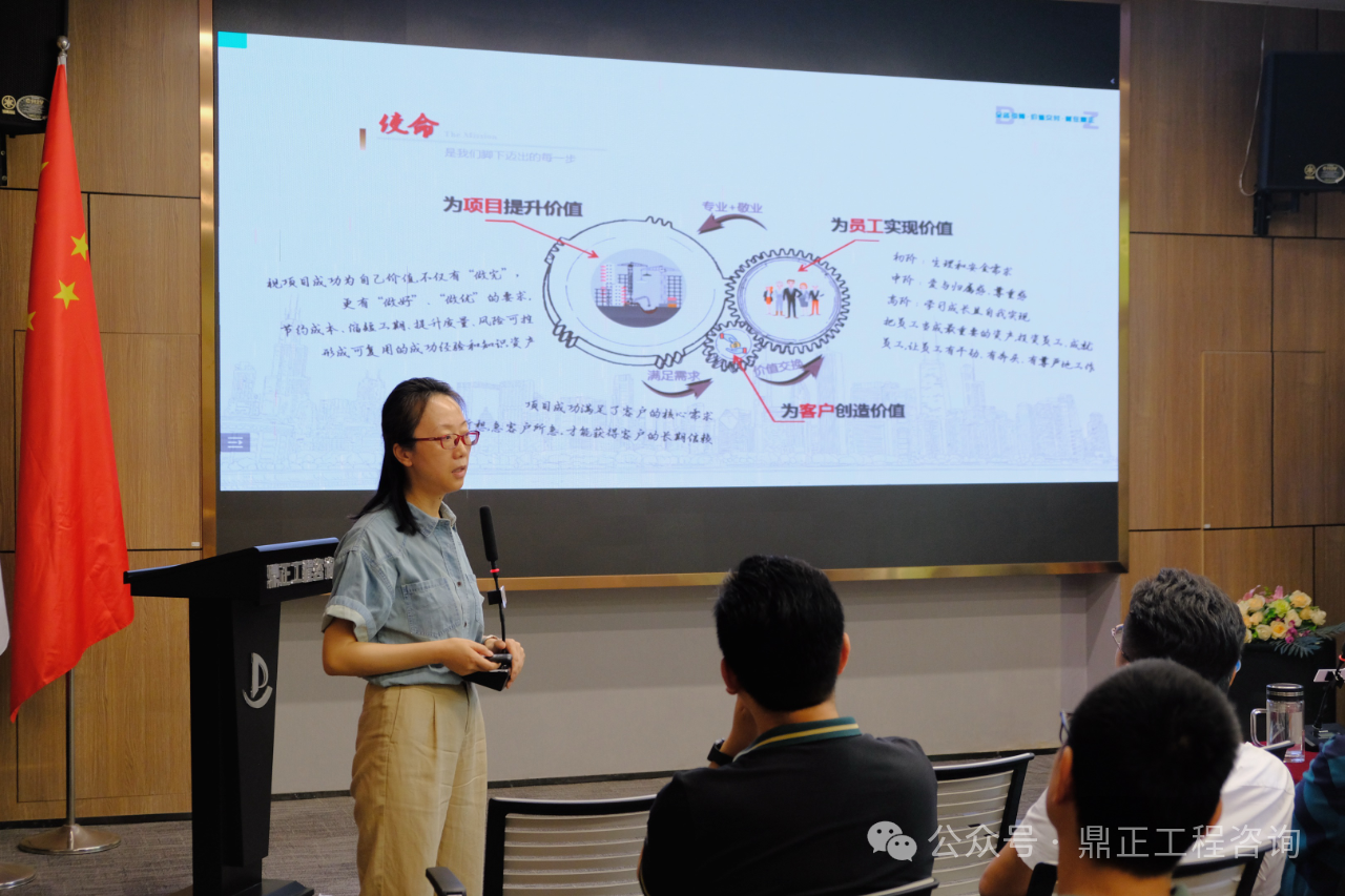 會(huì)議伊始,毛迎霞總經(jīng)理宣貫了《以價(jià)值創(chuàng)造者為本的鼎正文化體系》,緊扣“價(jià)值創(chuàng)造”這一核心要義,全面解讀了企業(yè)文化升級(jí)后的使命、愿景、價(jià)值觀及人才觀。