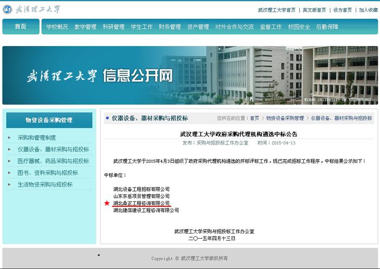 【經(jīng)營(yíng)成果】我司入選武漢理工大學(xué)政府采購(gòu)代理機(jī)構(gòu)庫(kù)