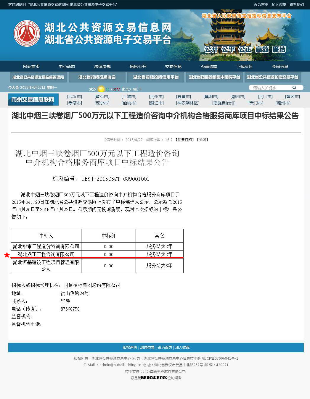 【經(jīng)營成果】我司入選湖北中煙三峽卷煙廠500萬元以下工程造價(jià)咨詢中介機(jī)構(gòu)合格服務(wù)商庫