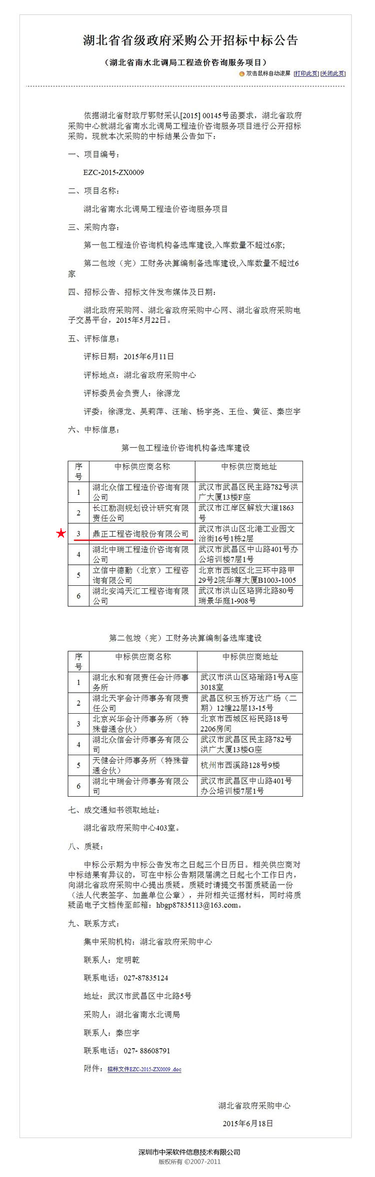 【經(jīng)營(yíng)成果】我司入選湖北省南水北調(diào)局工程造價(jià)咨詢機(jī)構(gòu)備選庫