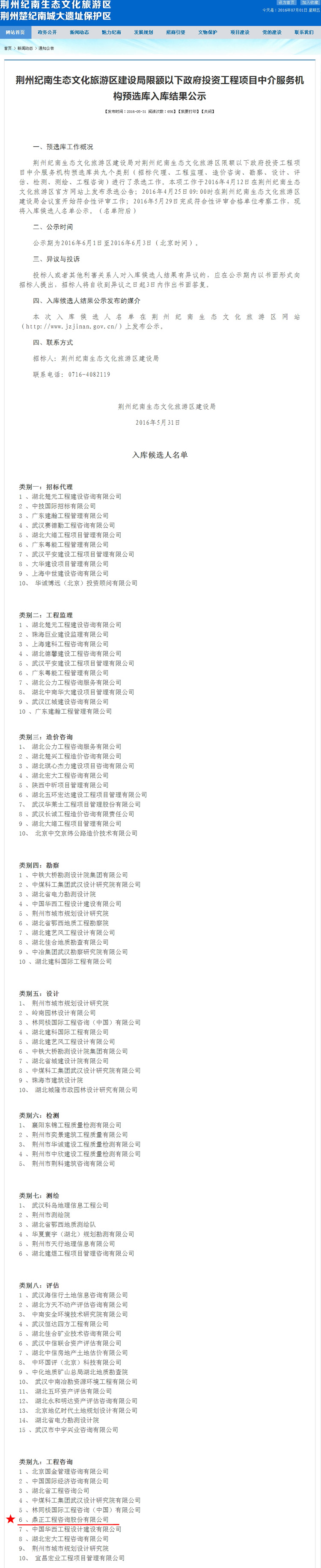 【經(jīng)營成果】我司入圍荊州紀南生態(tài)文化旅游區(qū)建設局限額以下政府投資工程項目中介服務機構(gòu)預選庫