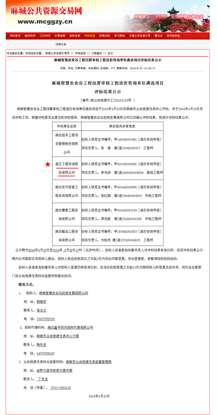 【經(jīng)營成果】我司入圍麻城智慧農(nóng)業(yè)谷工程結(jié)算審核工程造價咨詢單位庫
