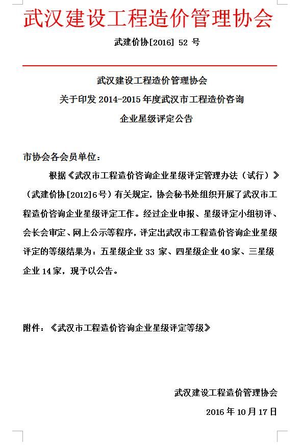 我司獲武漢市工程造價(jià)咨詢企業(yè)星級(jí)評(píng)定五星級(jí)企業(yè)稱號(hào)