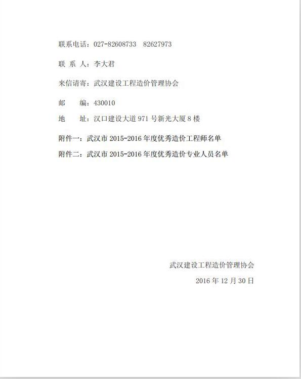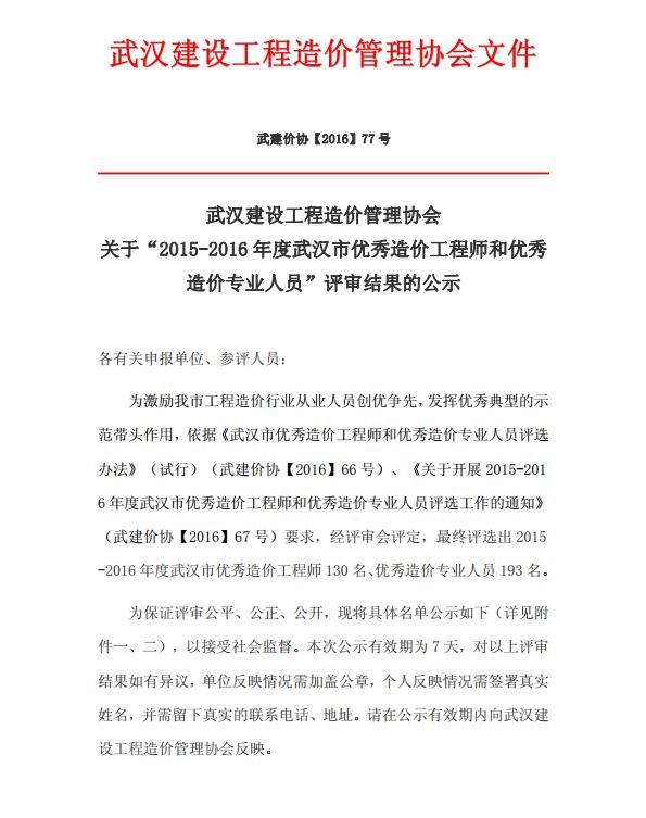 根據(jù)武建價(jià)協(xié)【2016】77號(hào)文件公示,我司員工楊靜、吳瓊榮獲2015-2016年度武漢市"優(yōu)秀造價(jià)工程師"稱號(hào),黃建新、張恒、吳輝、彭萍榮獲2015-2016年度“優(yōu)秀造價(jià)專業(yè)人員”稱號(hào)。此次榮譽(yù)的獲得,既是對(duì)我司同志工作的肯定,也展示了鼎正人愛崗敬業(yè)、爭(zhēng)創(chuàng)一流的精神風(fēng)貌。鼎正公司將以更加昂揚(yáng)的斗志和飽滿的熱情,服務(wù)于企業(yè)、服務(wù)于社會(huì)!
