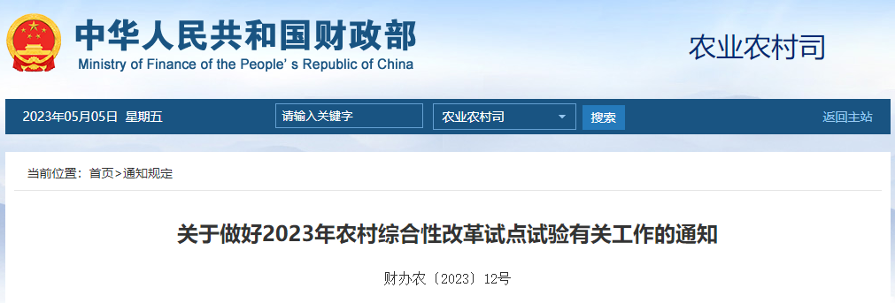 為深入貫徹黨的二十大精神,認(rèn)真落實(shí)2023年中央一號(hào)文件“深化農(nóng)村改革”、“深入推進(jìn)農(nóng)村綜合改革試點(diǎn)示范”的任務(wù)要求和中共中央、國(guó)務(wù)院印發(fā)的《數(shù)字中國(guó)建設(shè)整體布局規(guī)劃》部署,在總結(jié)前期試點(diǎn)經(jīng)驗(yàn)的基礎(chǔ)上,2023年中央財(cái)政繼續(xù)支持實(shí)施并啟動(dòng)新的農(nóng)村綜合性改革試點(diǎn)試驗(yàn)(以下簡(jiǎn)稱(chēng)試點(diǎn))。現(xiàn)就有關(guān)工作通知如下。